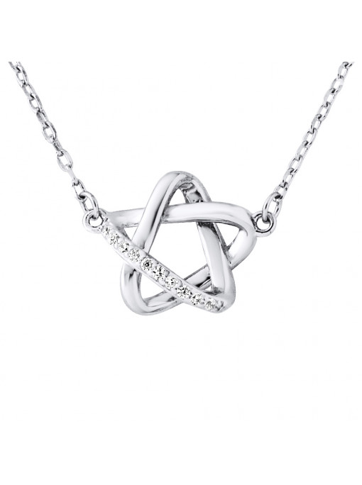 - Collier motif "NŒUD" serti d'Oxydes de Zirconium - Chaîne Maille Forçat - en argent 925 millièmes