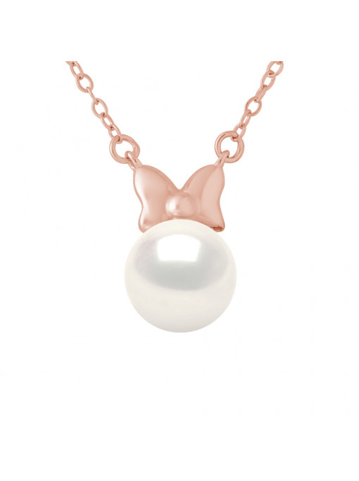 - Collier motif "PAPILLON" et Perle Blanche - Chaîne Maille Forçat - en argent 925 millièmes plaqué Or Rose