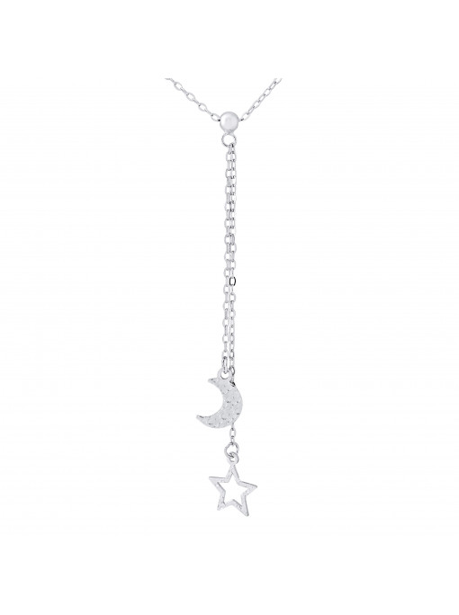 - Collier "CRAVATE" motif Étoile et Lune - Chaîne Maille Forçat - en argent 925 millièmes