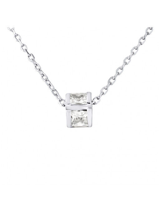 - Collier motif "TONNEAU" serti d'Oxydes de Zirconium Barrettes Blanches - Chaîne Maille Forçat - en argent 925 millièmes