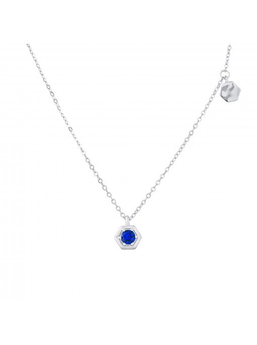- Collier SOLITAIRE Oxyde de Zirconium BLEU serti clos - Chaîne Maille Forçat - en argent 925 millièmes